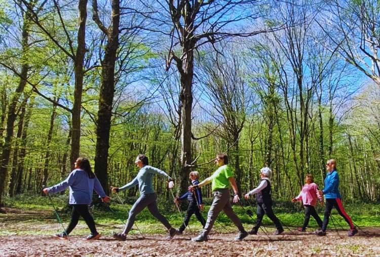 Pendant la séance, nous expérimentons la technique de la marche nordique où 90% des muscles du corps sont sollicités, ainsi que l’utilisation de différents rythmes de respiration qui nous aident à nous ancrer dans le moment présent.